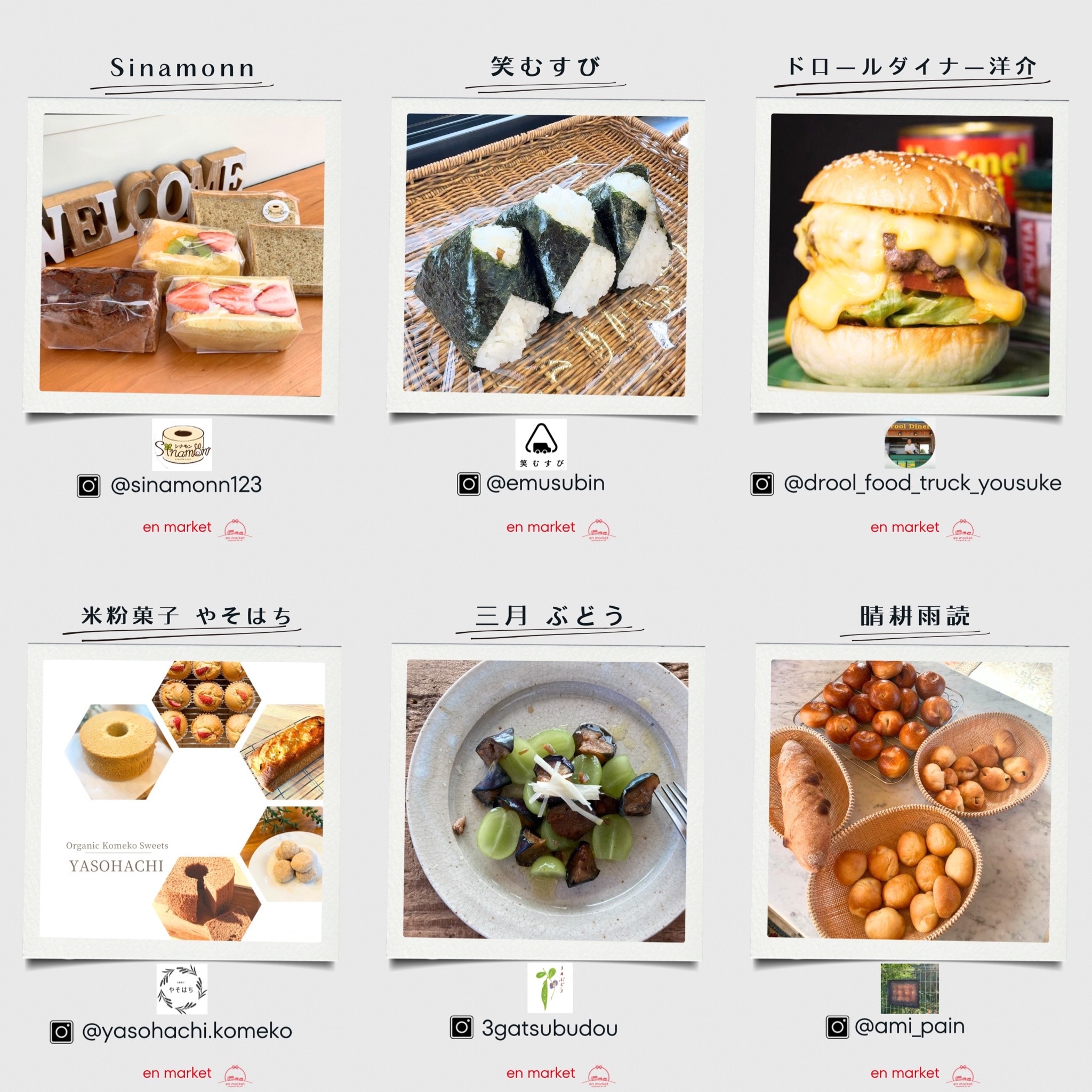 ②6/9(日) 第1回 en market の出店者さんが出揃いましたので、画像にてご案内させていただきます。