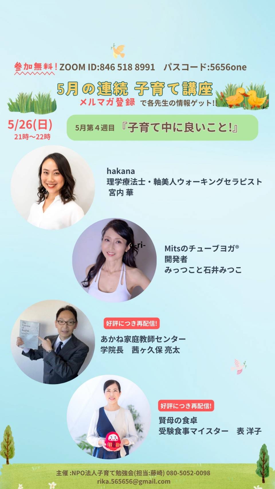 とにかく今!子育てど真ん中!頑張ってる御両親様方に!耳よりな情報を!専門家の先生に伺います!それも無料です。