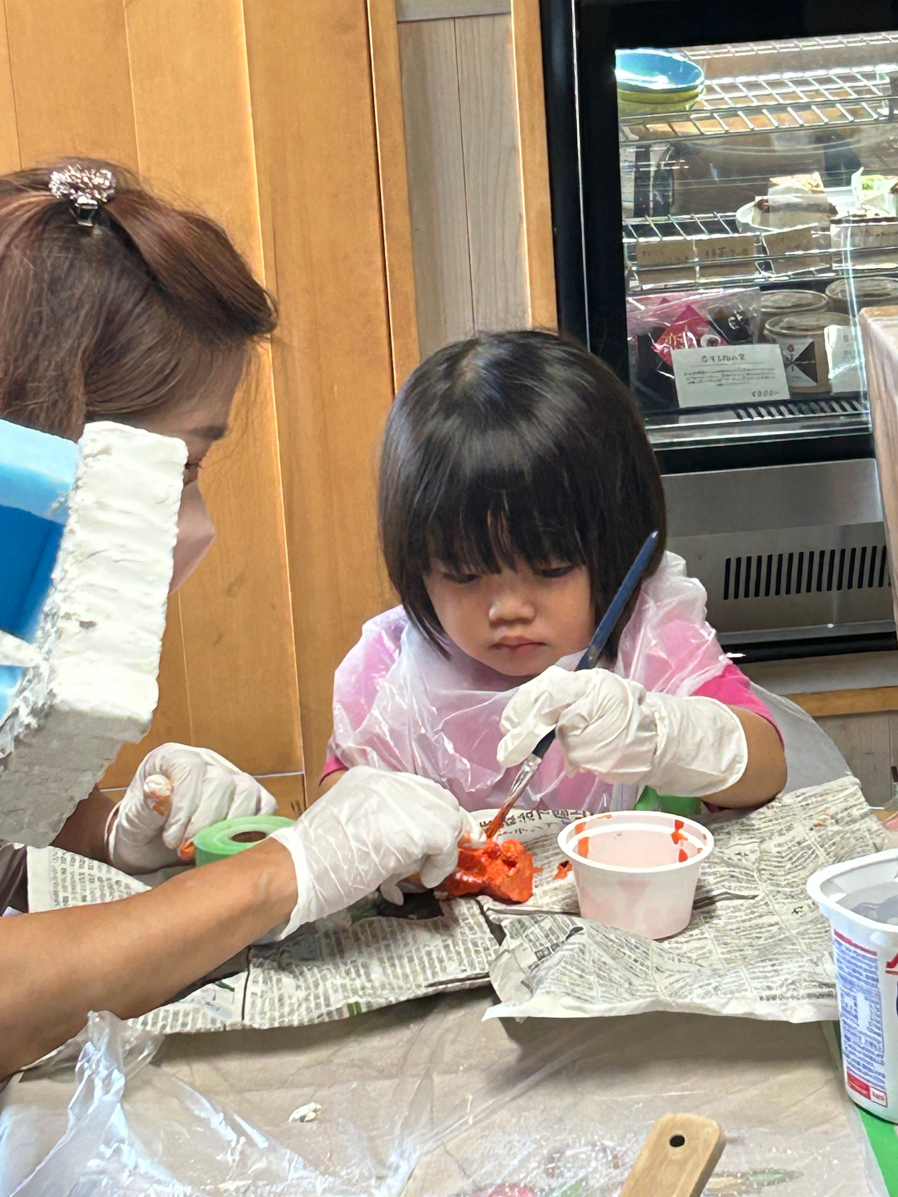 モルタル作成のワークショップは3歳も飛び入り参加出来て、賑やかな時間となりました😂