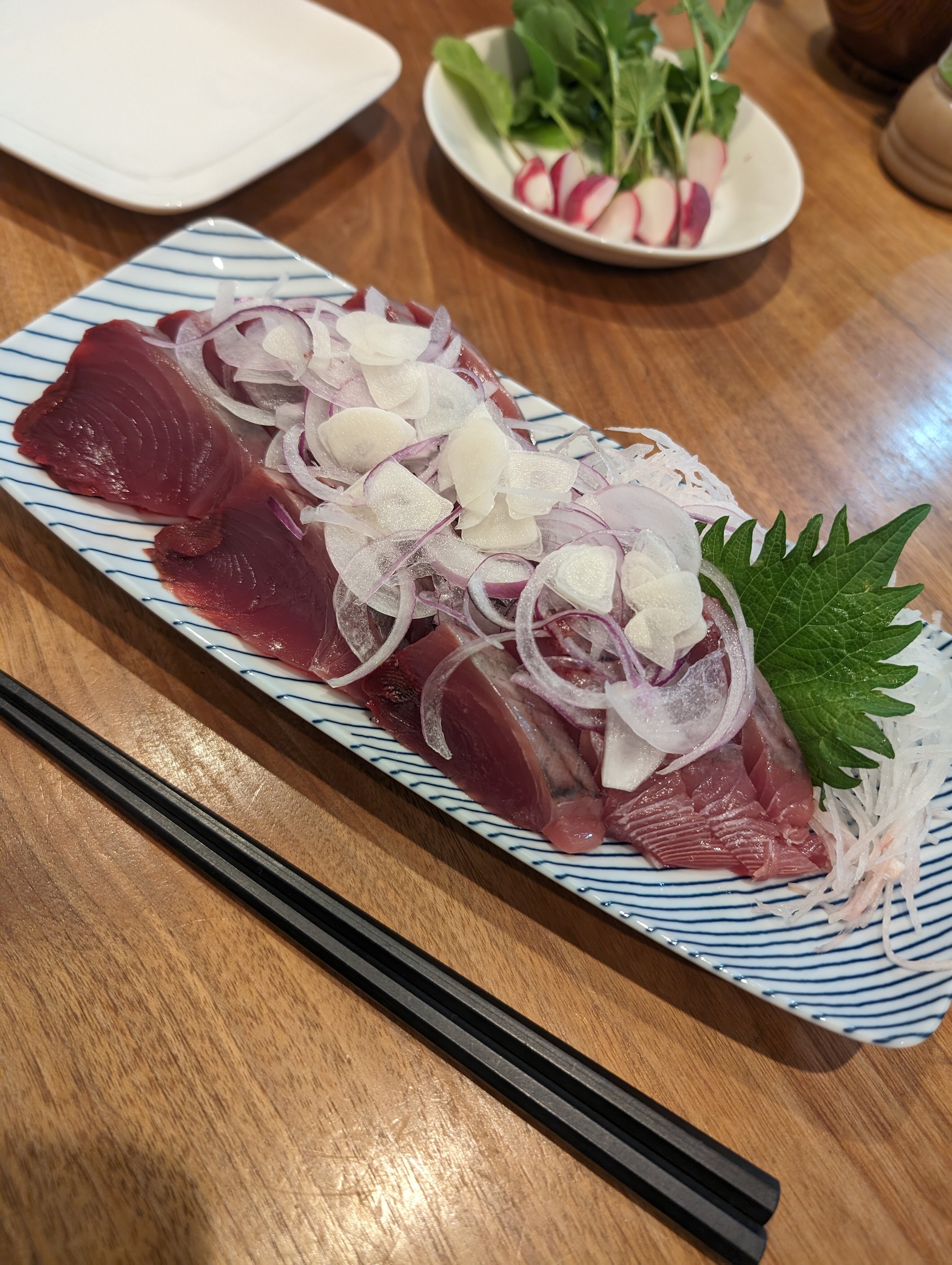 2.鰹のたたき【付け合わせの生にんにくスライス】