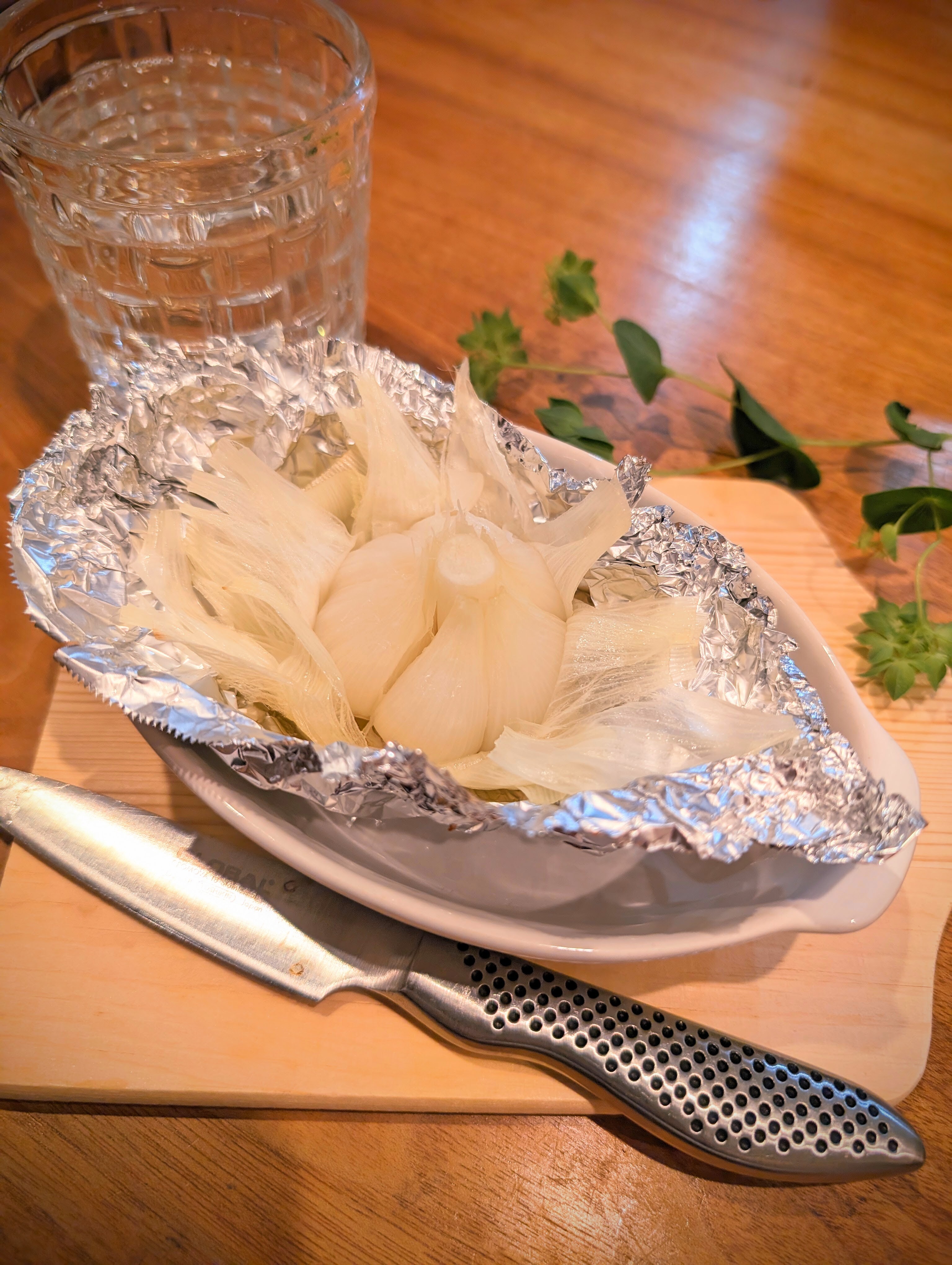 1.生ニンニクのホイル焼き(下記写真 左上・右上)