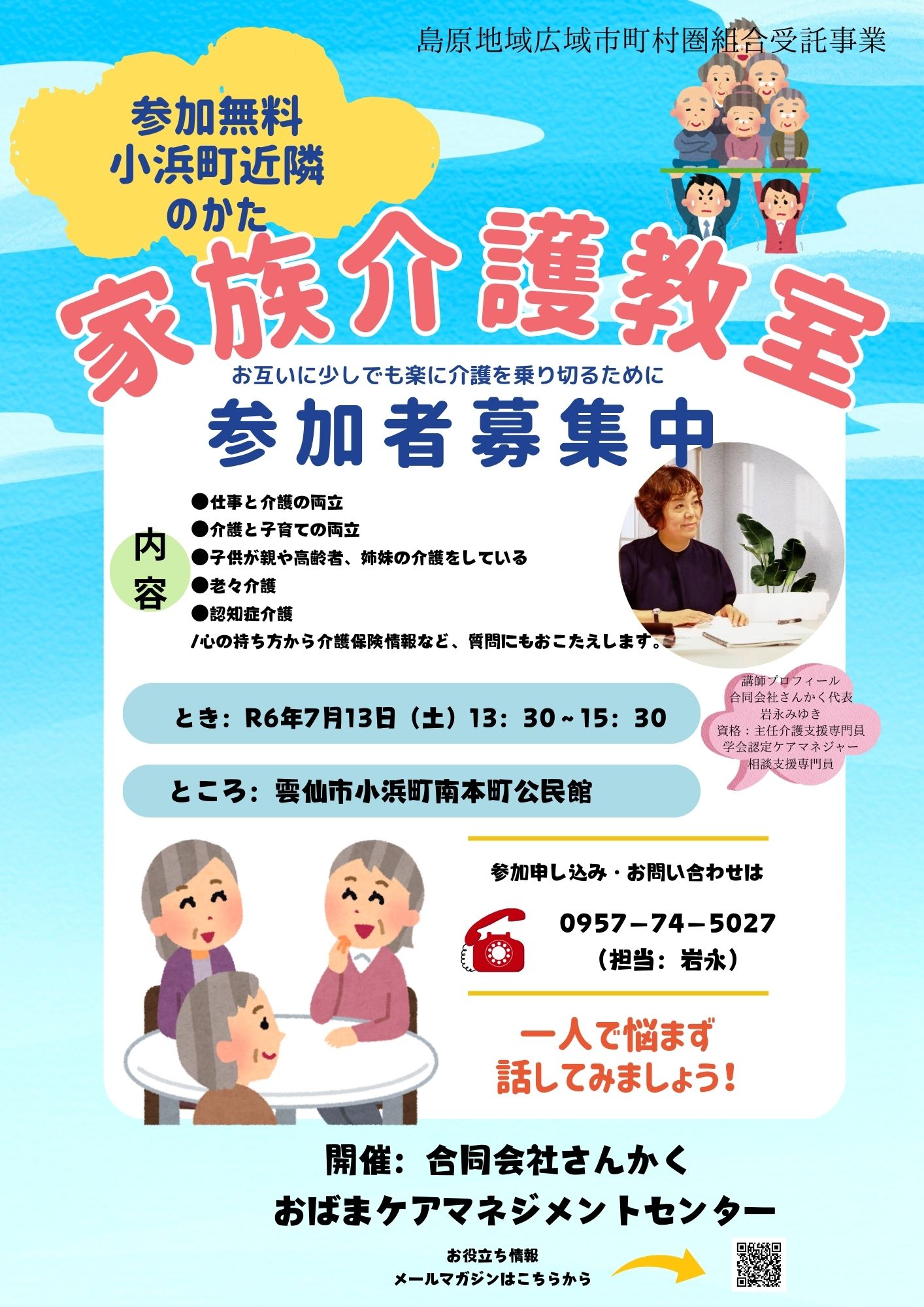 一般の住民対象に令和6年度家族介護教室を開催します。
