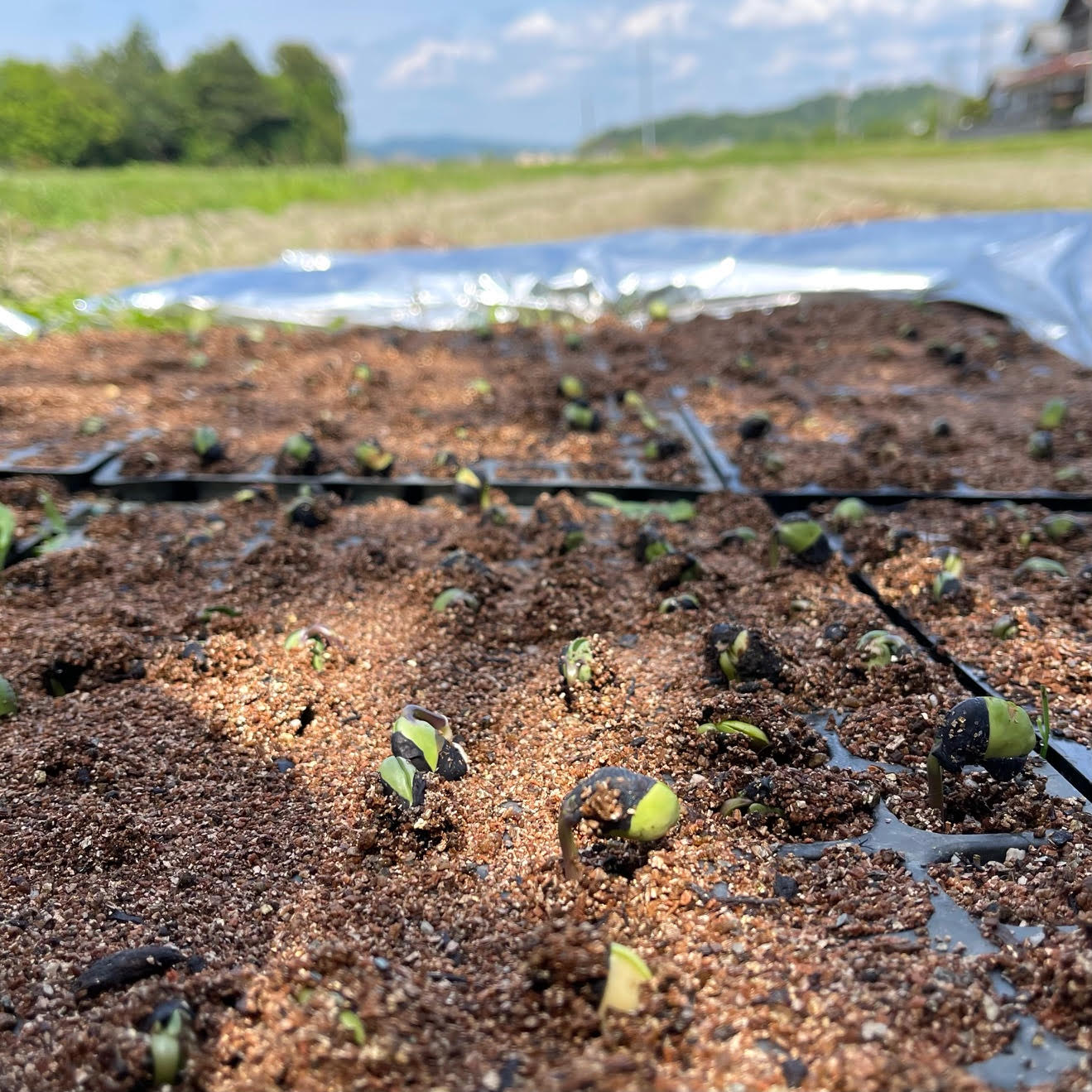 先週、川北黒大豆の種まきをして、みんな一斉に芽を出してくれました👍🏻✨
