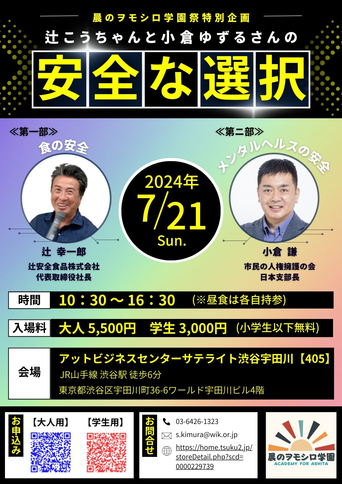 7/21(日)【晨のヲモシロ学園祭】特別企画「辻幸一郎社長&小倉謙さんの『安全な選択』」を開催します