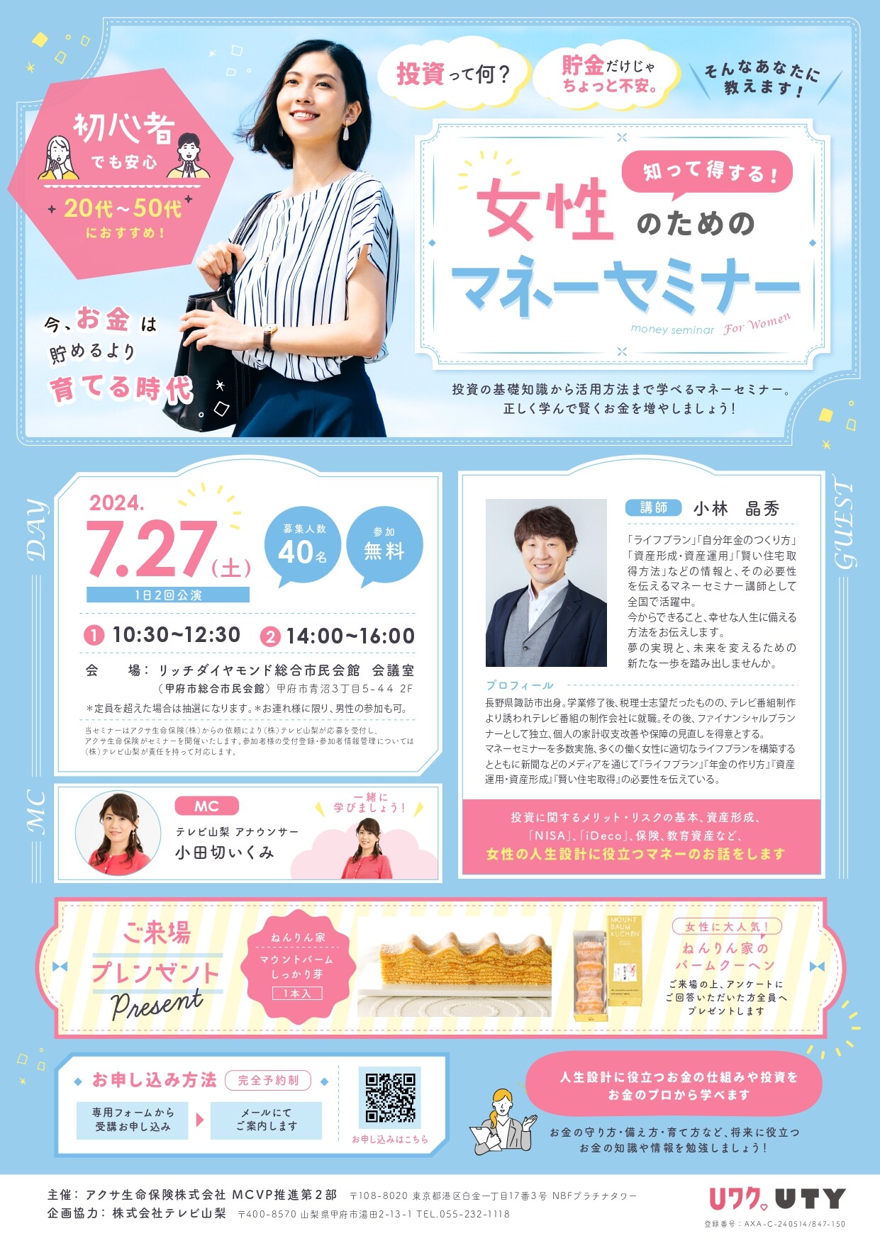 UTY小田切アナウンサーと一緒にお金のプロから賢く学びましょう!