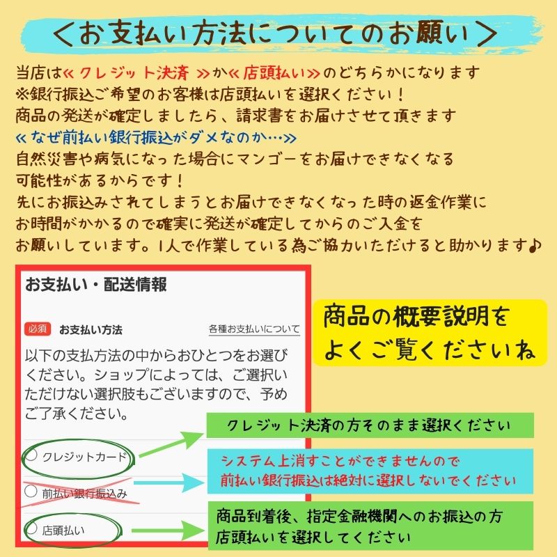 ナマモノを扱っているためお支払い方法にもご注意くださいね。