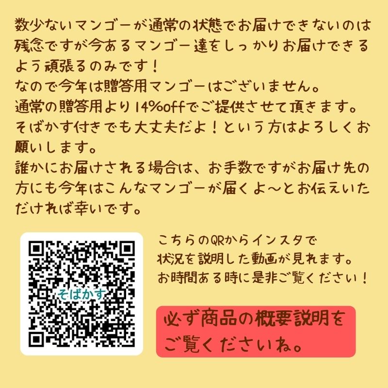 皆様にはご迷惑おかけしますが、数に限りのあるマンゴーを