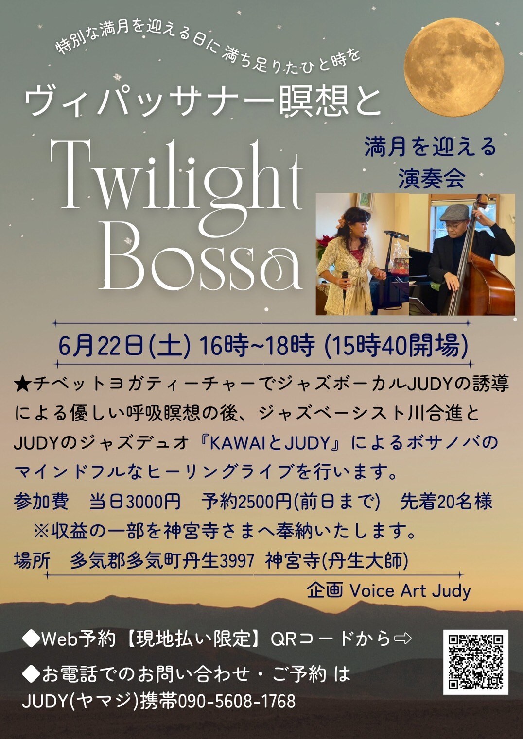 ◆ジャズデュオKAWAI & JUDYの『ヴィパッサナー瞑想とTwilight Bossa』開催のご案内