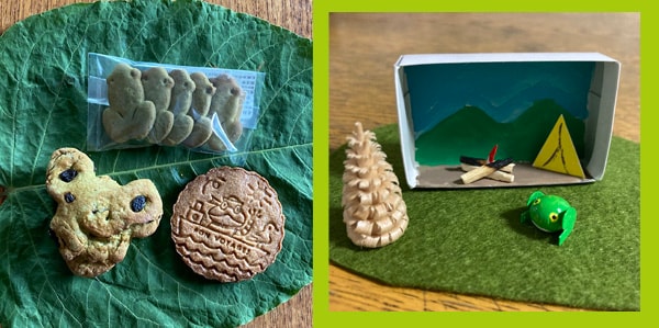 クスクスオーブンのカエルの形の焼き菓子と、マットの作るオリジナル雑貨の詰め合わせです。