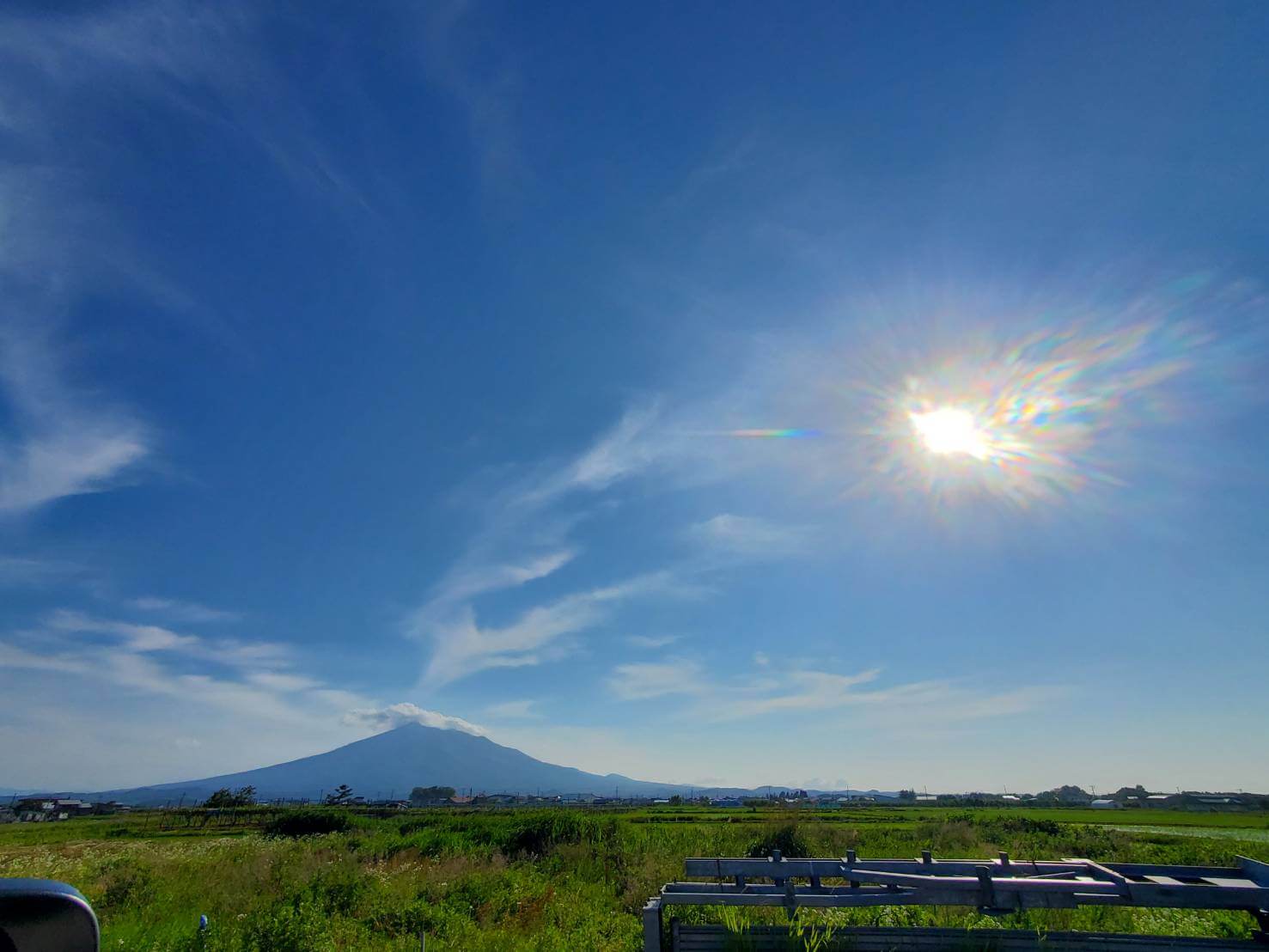 龍神雲、もしくはイルカ雲が岩木山の頂上にまるでchu♡っとしているように見えます。