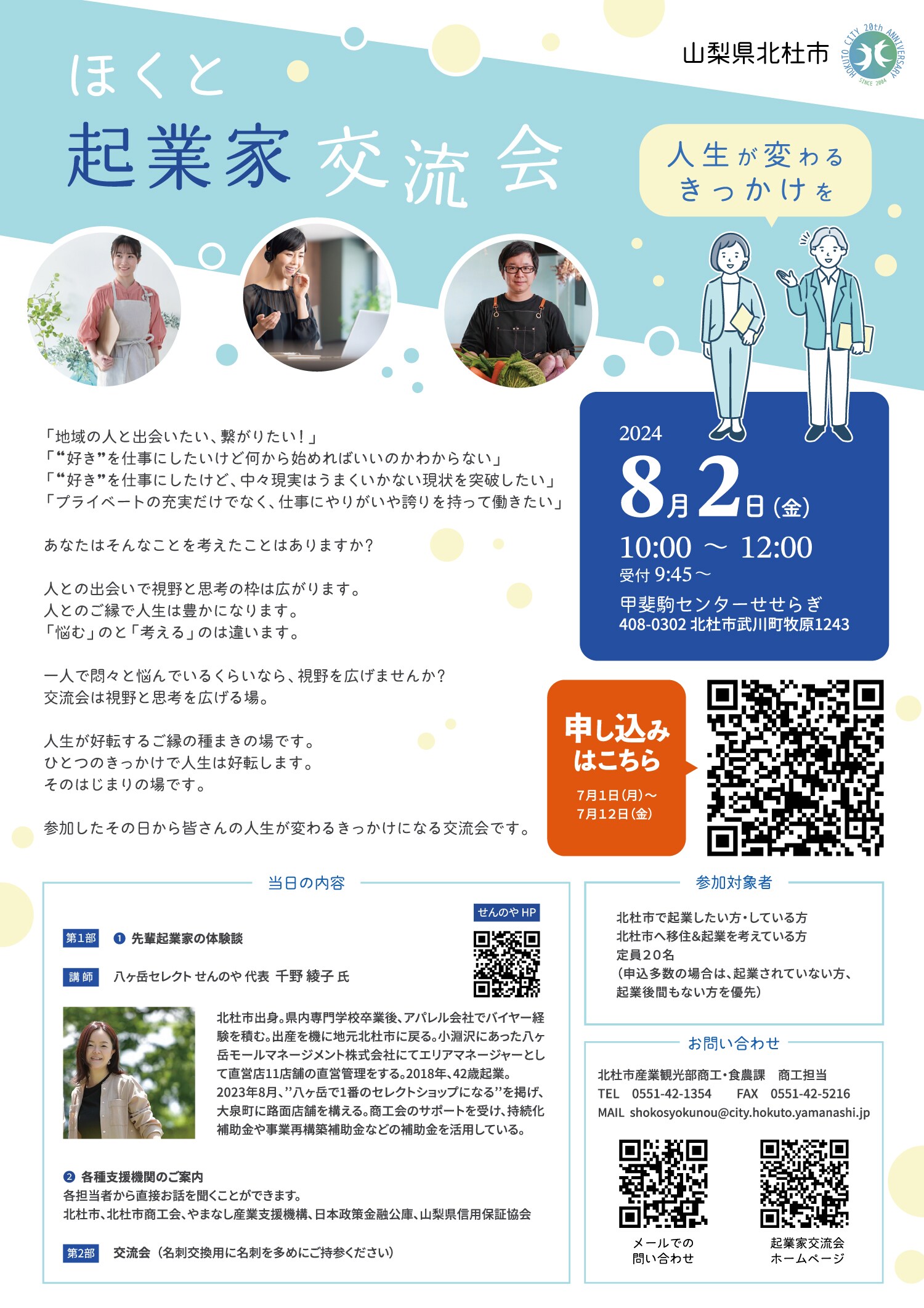 北杜市で起業されたい方・している方・北杜市へ移住&起業を考えている方
