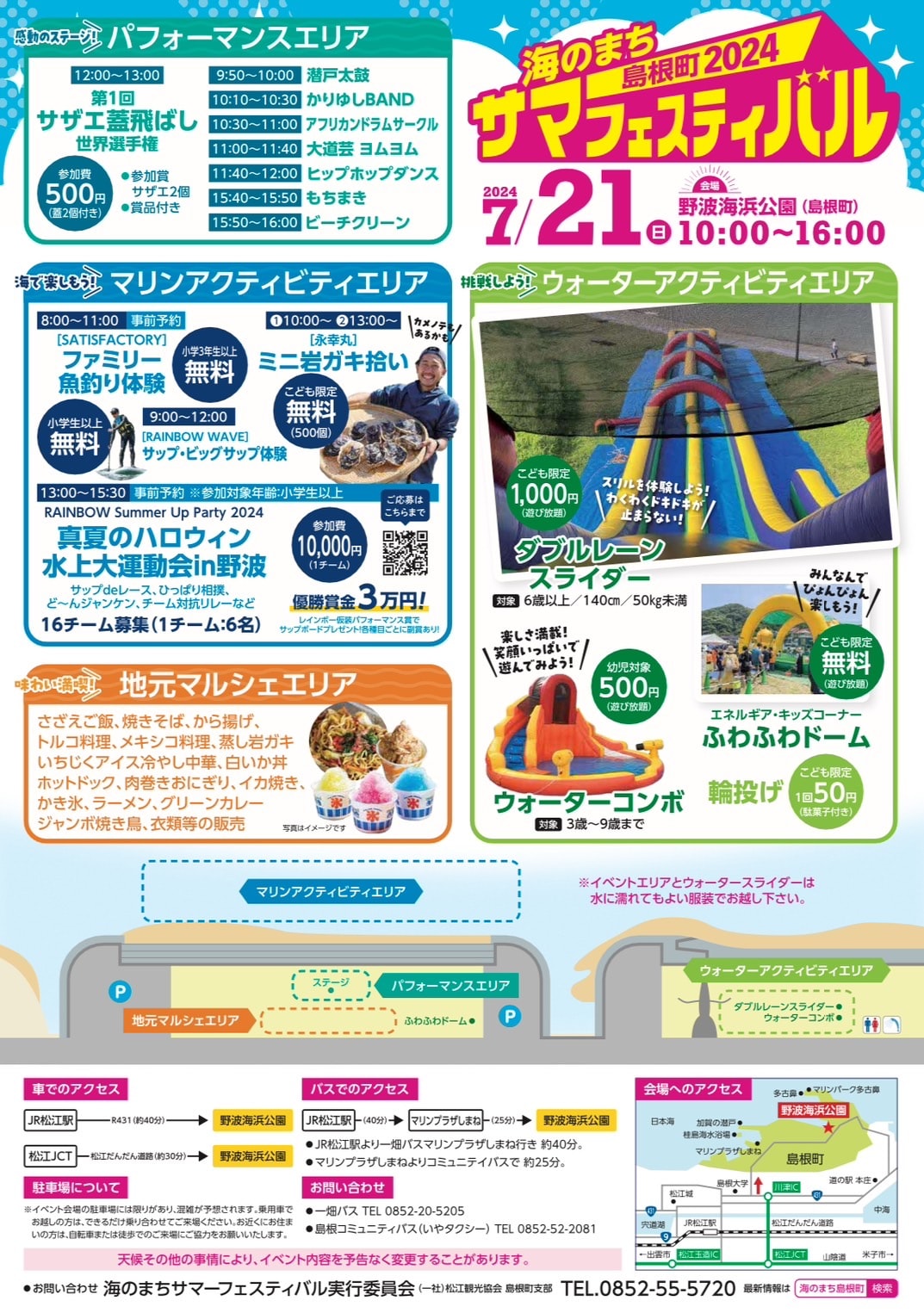 ②7/21(日):海のまち島根町 サマーフェスティバル 2024 【Summer Up Party 真夏のハロウィン水上サップ大運動会】