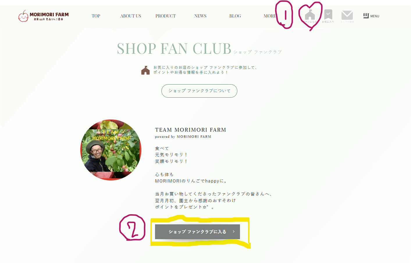 上記はMORIMORIのHPを例にしたものなので皆さんは”お買い物をしたお店さん”の中から毎月1店舗お氣に入りのお店さんのファンクラブに入ってみてくださいね。