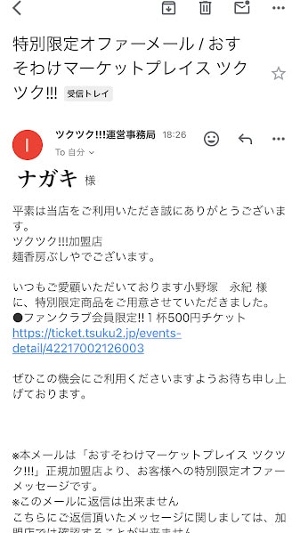 そして、これから販売される【ショップファンクラブ会員限定チケット】はオファーメールの届いた方にしかご購入できません⚠️