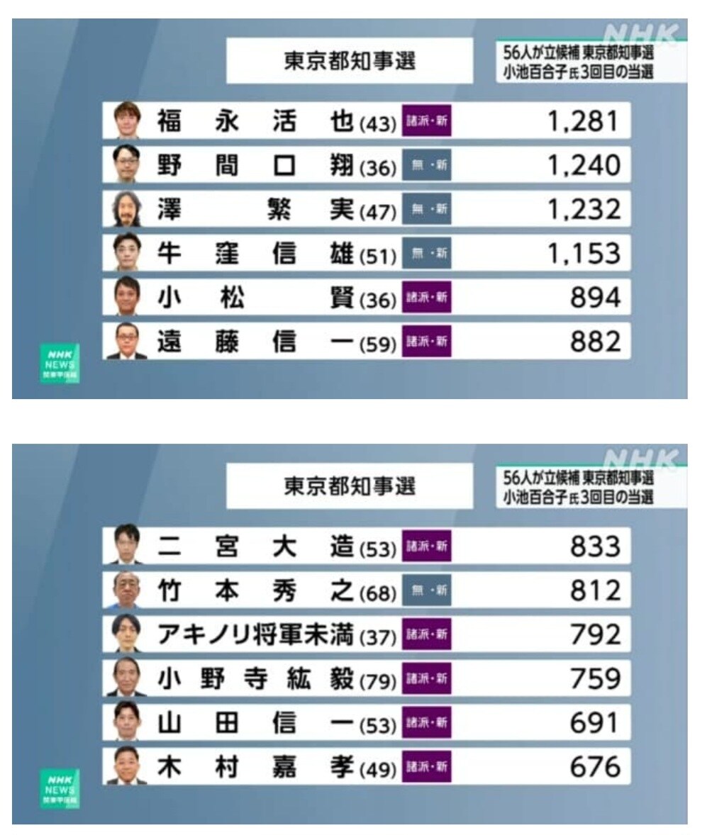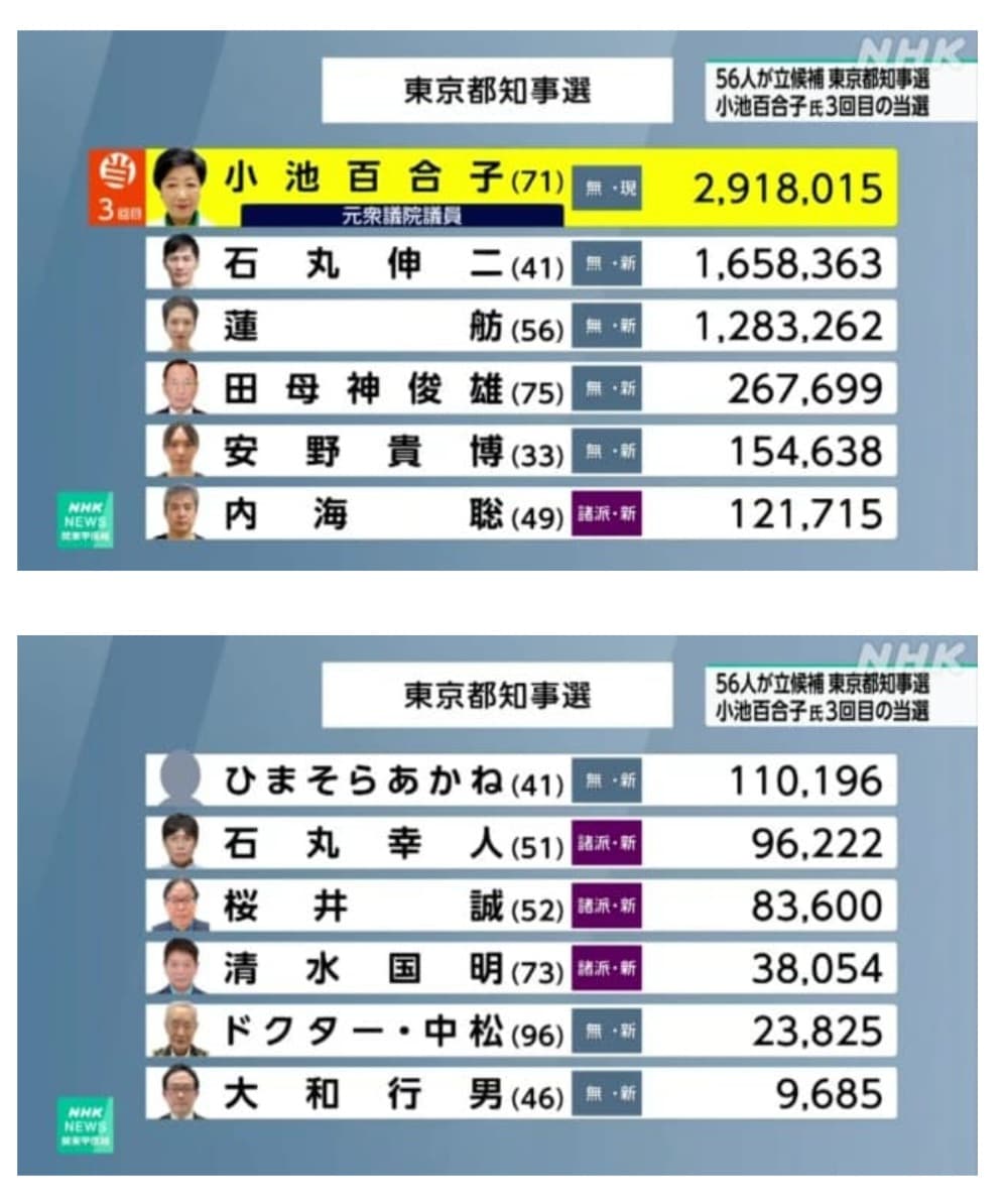 今回は小池さん、石丸伸二さん、蓮舫さんの