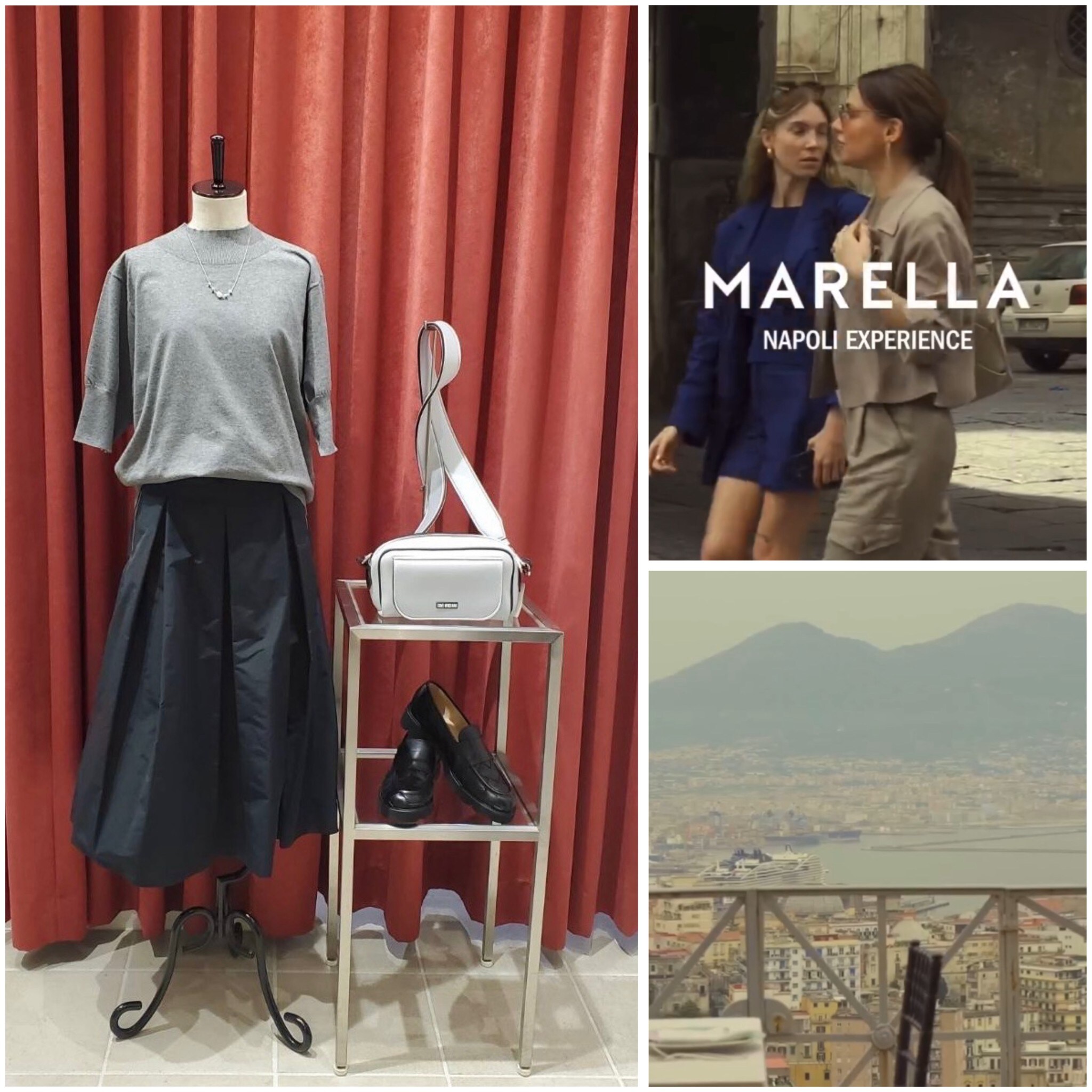 ♡MARELLA i BLUSより秋の新作入荷しました❣️トップスのグレーのニットは袖丈も程よく出したくない部分をスッキリカバー✨タフタ素材のスカートともバランス良く秋一番にオススメです😊