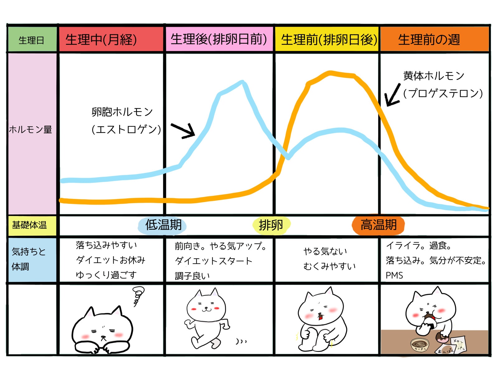 この2つの女性ホルモンは、月経が正常な場合、約28日間のサイクルで増減しながら分泌されています。