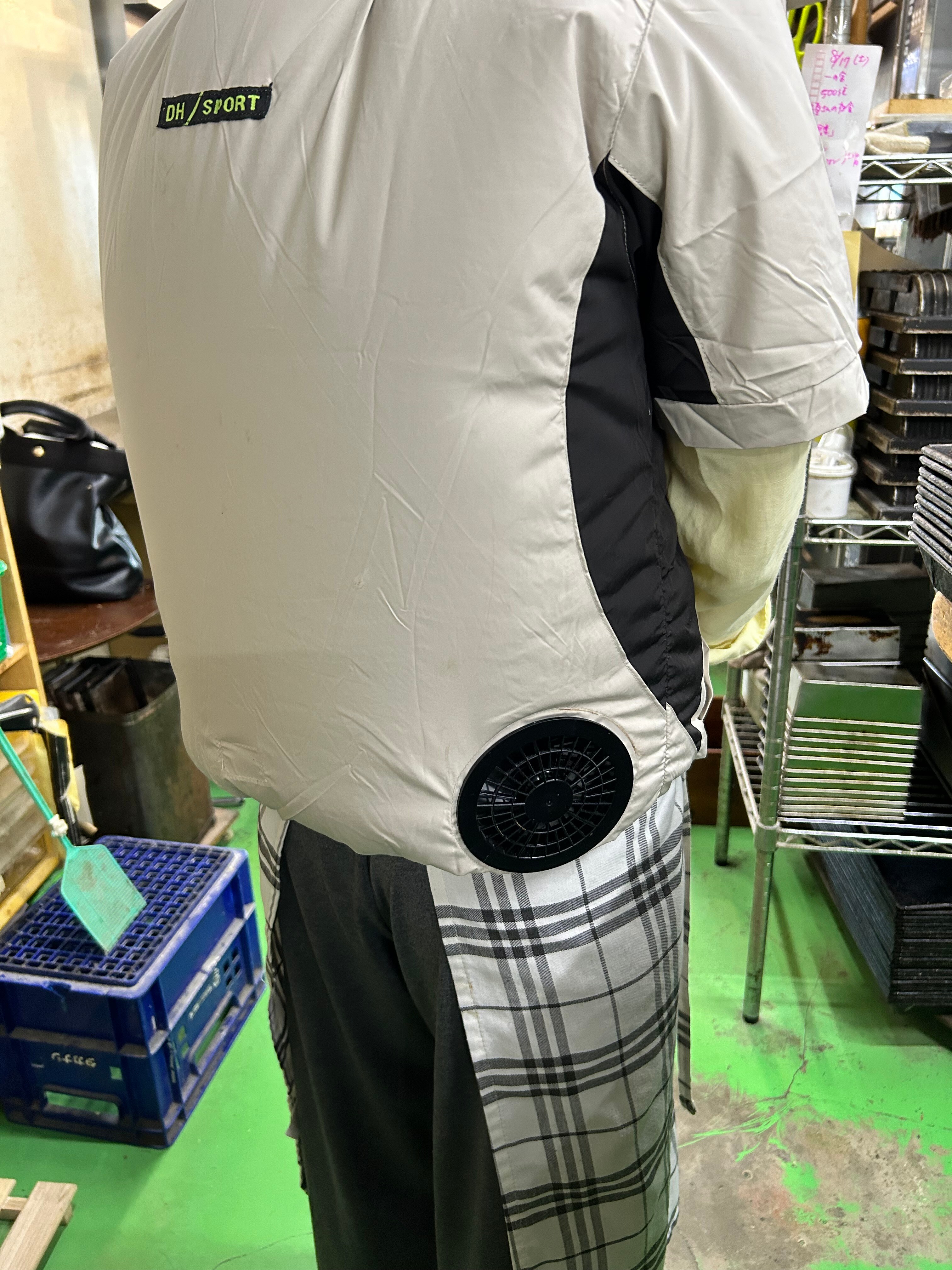 先日、職人さんがよく着用されているファンの付いた上着を導入してみました。