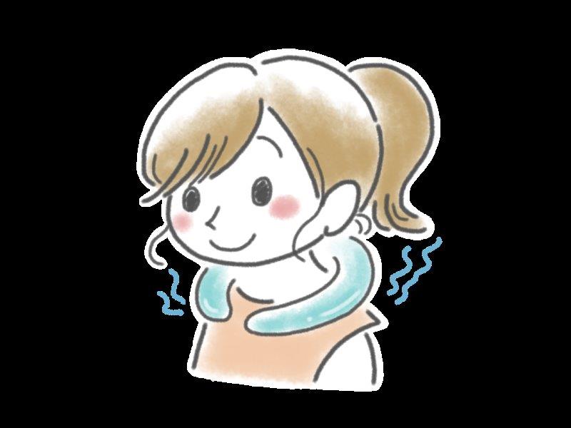 1.オフィスや電車の中などでは首元にストールを巻いたり、家ならタオルがおすすめ!汗かいて冷えるのも予防できます。