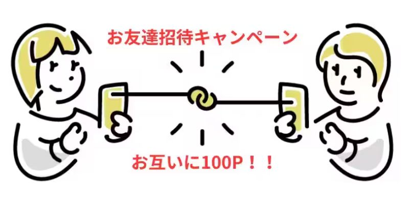 1人ご招待する毎に、100円分のポイントがお互いに必ずもらえます!(1日最大5名まで)
