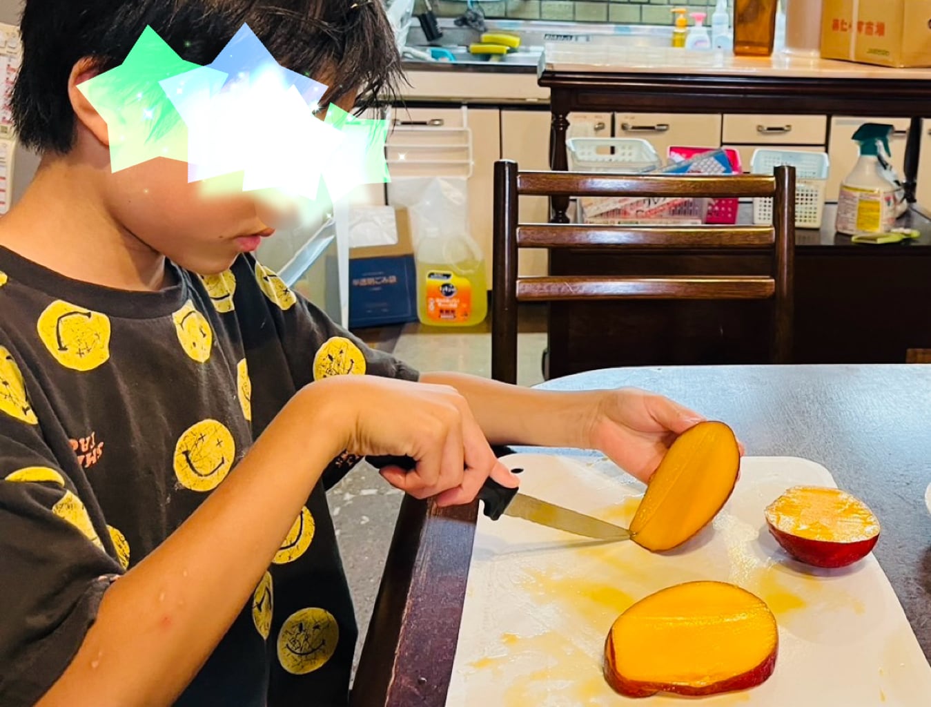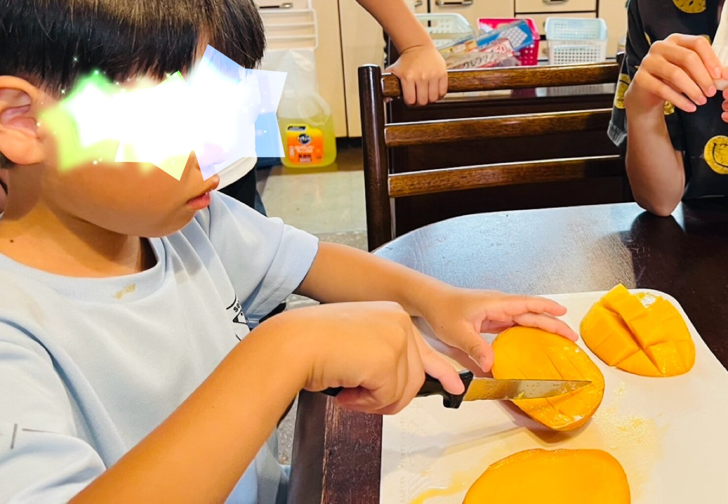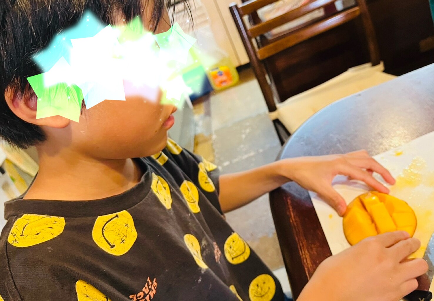 子ども達がお店で見掛けるマンゴーカットに挑戦してくれたみたいです。