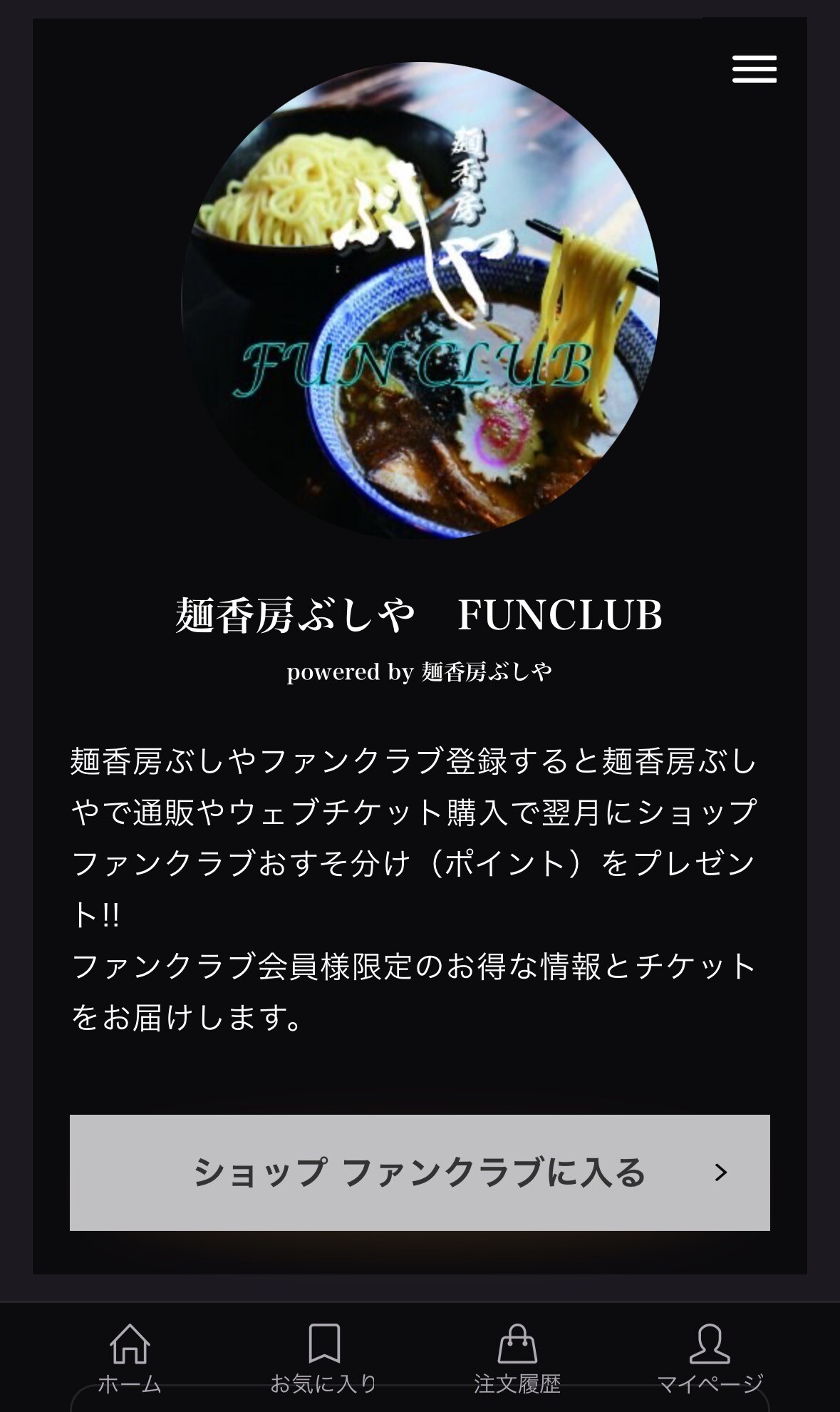 上記2つともやっているという方は、麺香房ぶしやのホームページより【ショップファンクラブ】に参加していただくと条件達成です✅