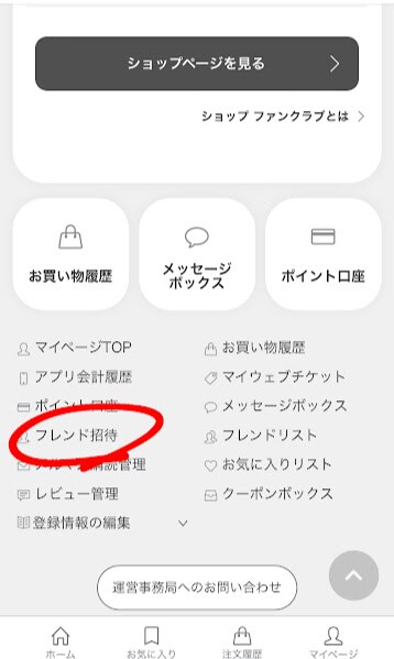 ←【フレンド招待】を選択