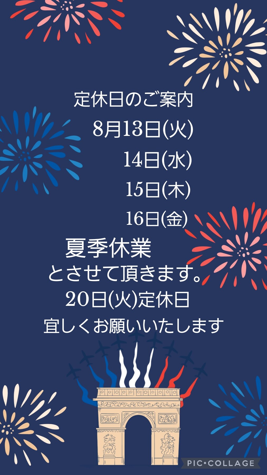 13日から16日まで夏季休業。