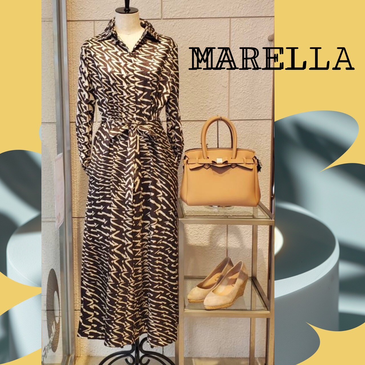 MARELLAからはインポートらしいプリントのワンピースが届きました✨エレガントな雰囲気の中にシャツカラーで少しスポーティー要素をプラス。ポリエステル素材なのご自宅でケアできるところもポイント⤴️です😊