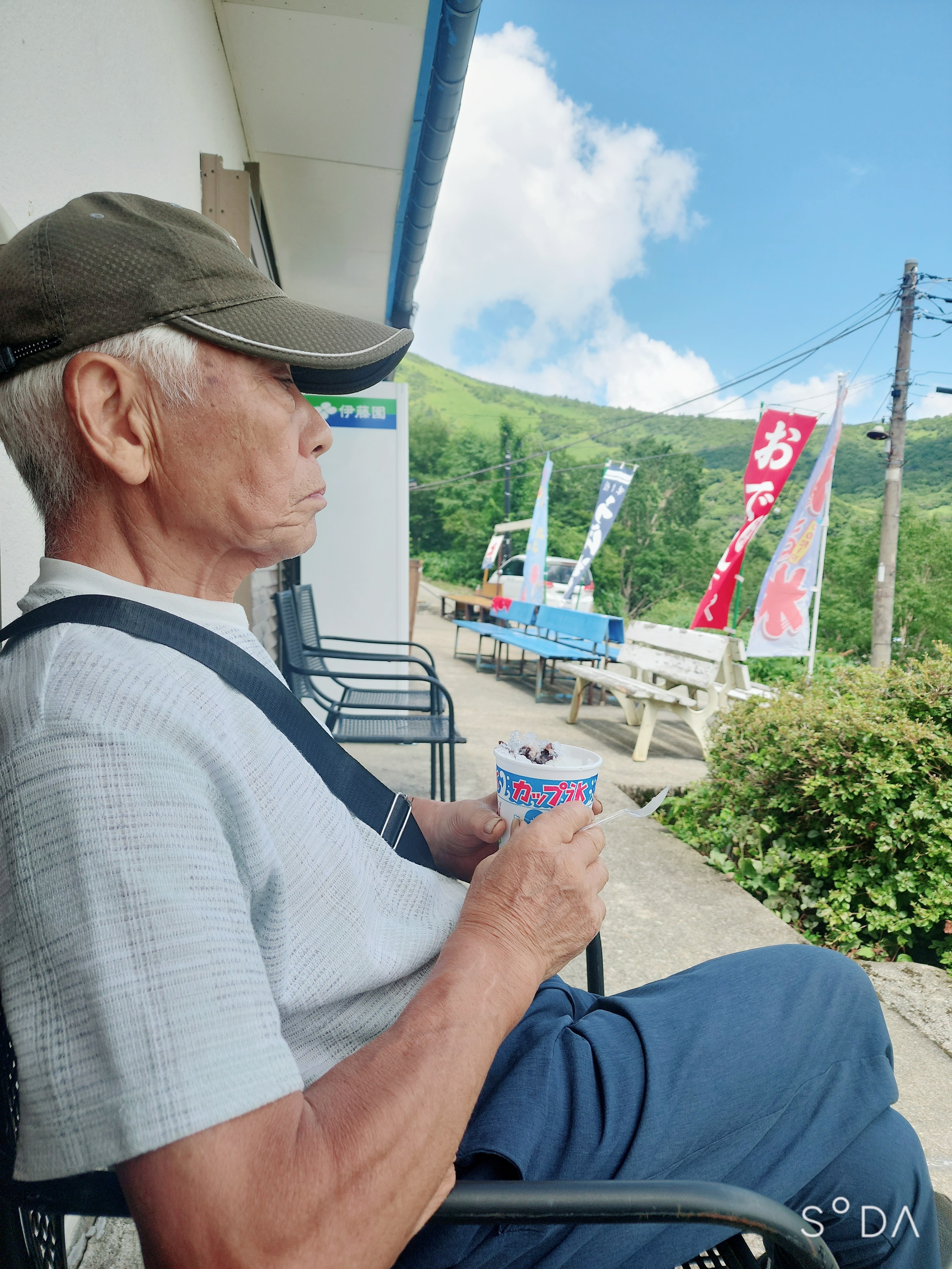 茶屋のかき氷をエサに