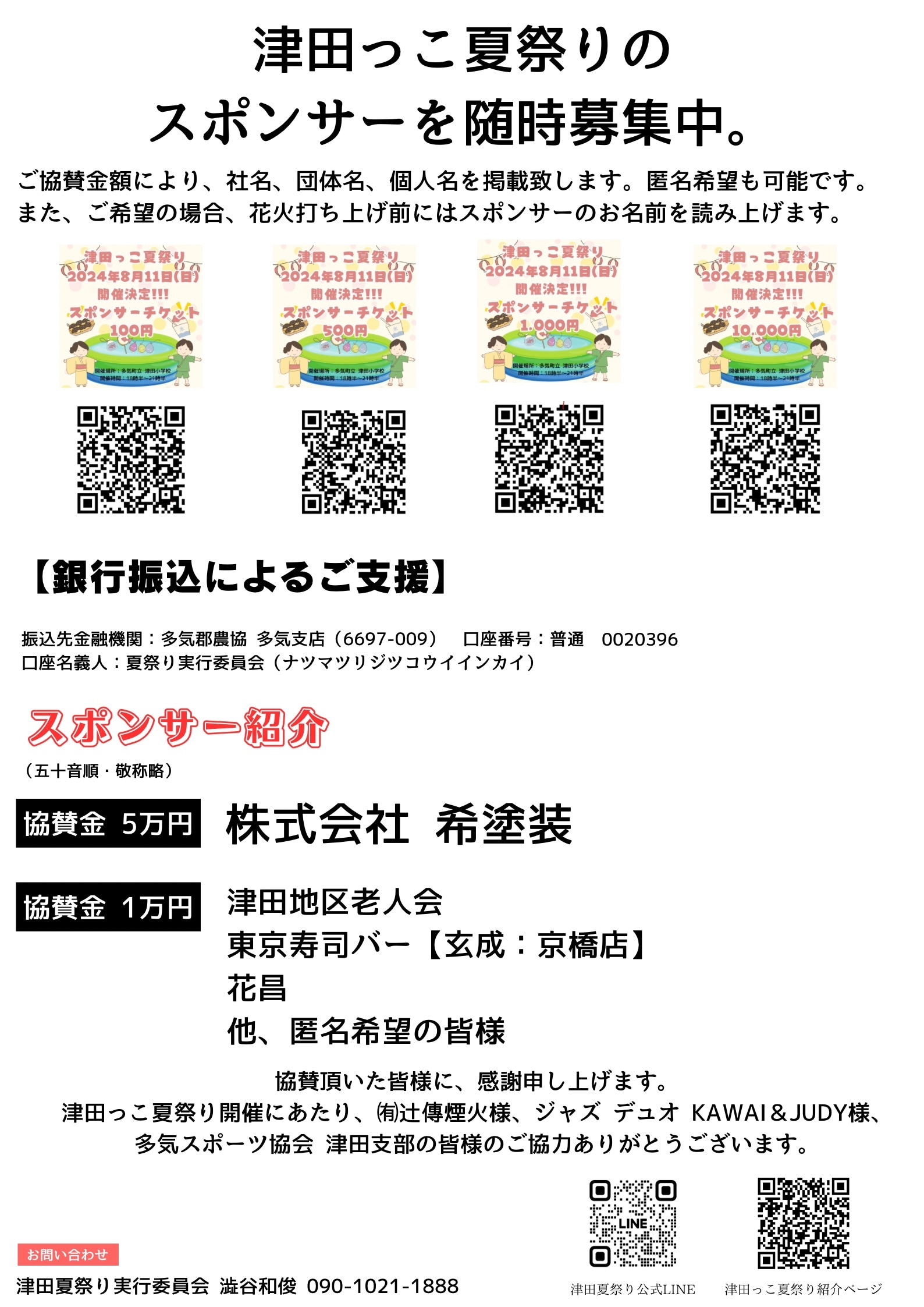 ◇津田っこ夏祭り 2024 スポンサーチケット 100円