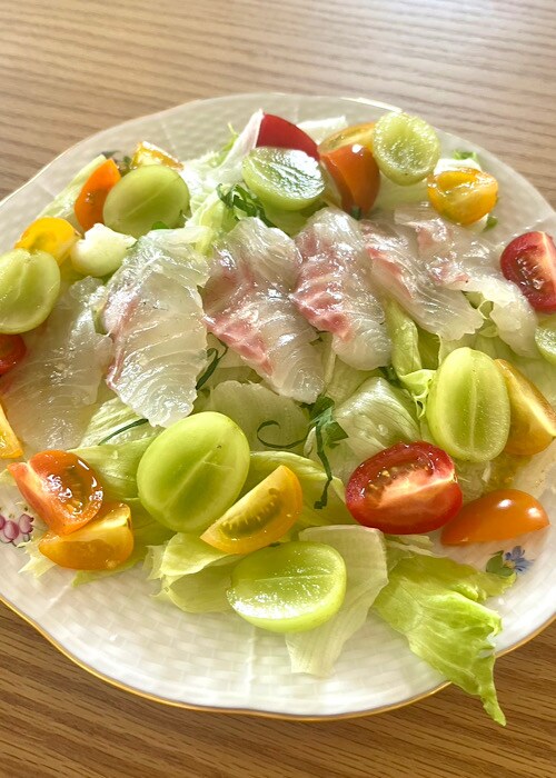 ▶︎シャインマスカットと真鯛のカルパッチョ