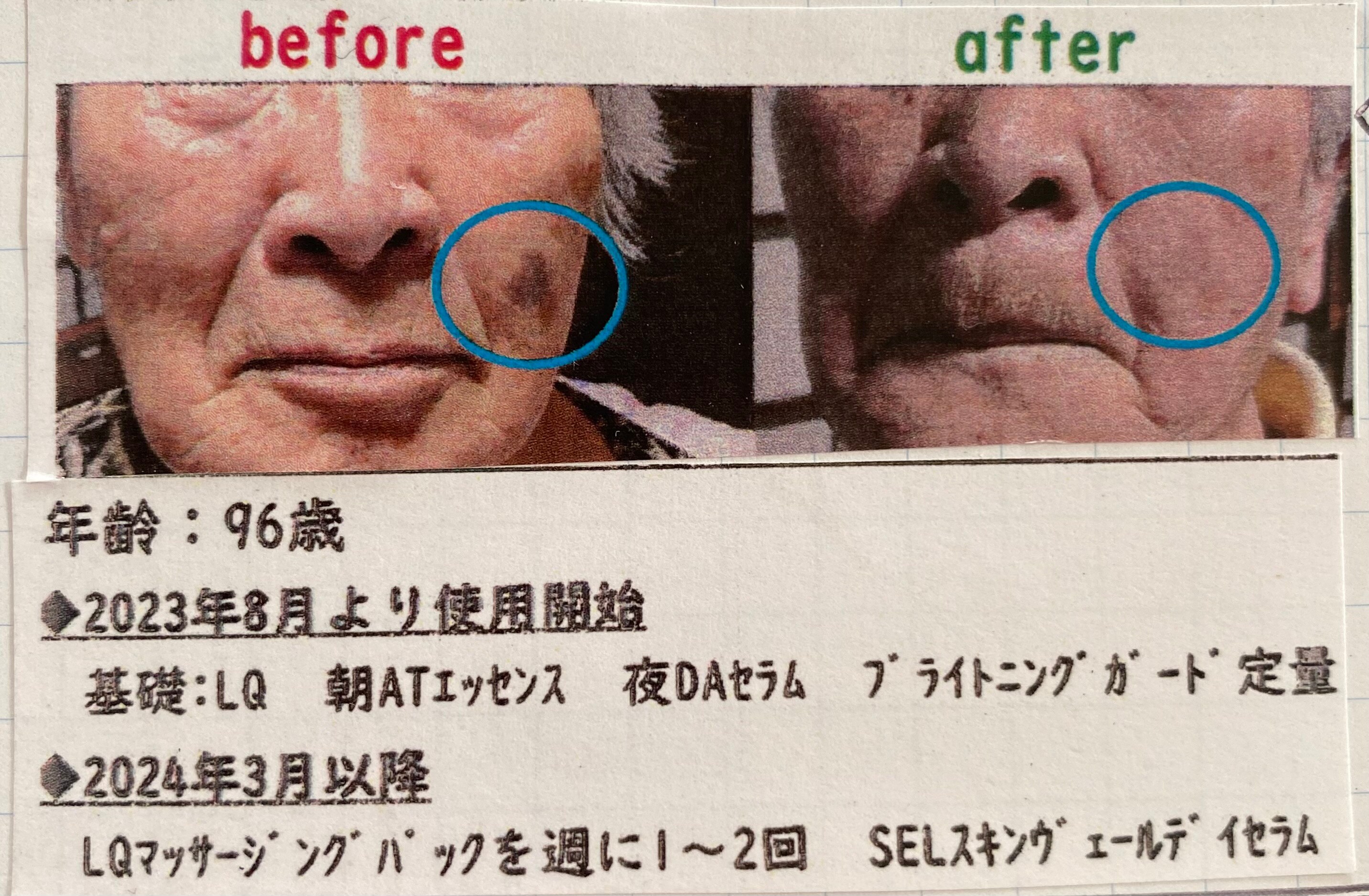 96歳のおばあちゃんが美白を体内からやって一年で頑固なシミがなくなってるんだよ!すごい👏