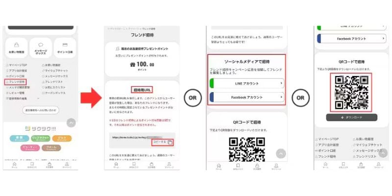 1人ご招待する毎に、100円分のポイントがお互いに必ずもらえます!(1日最大5名まで)