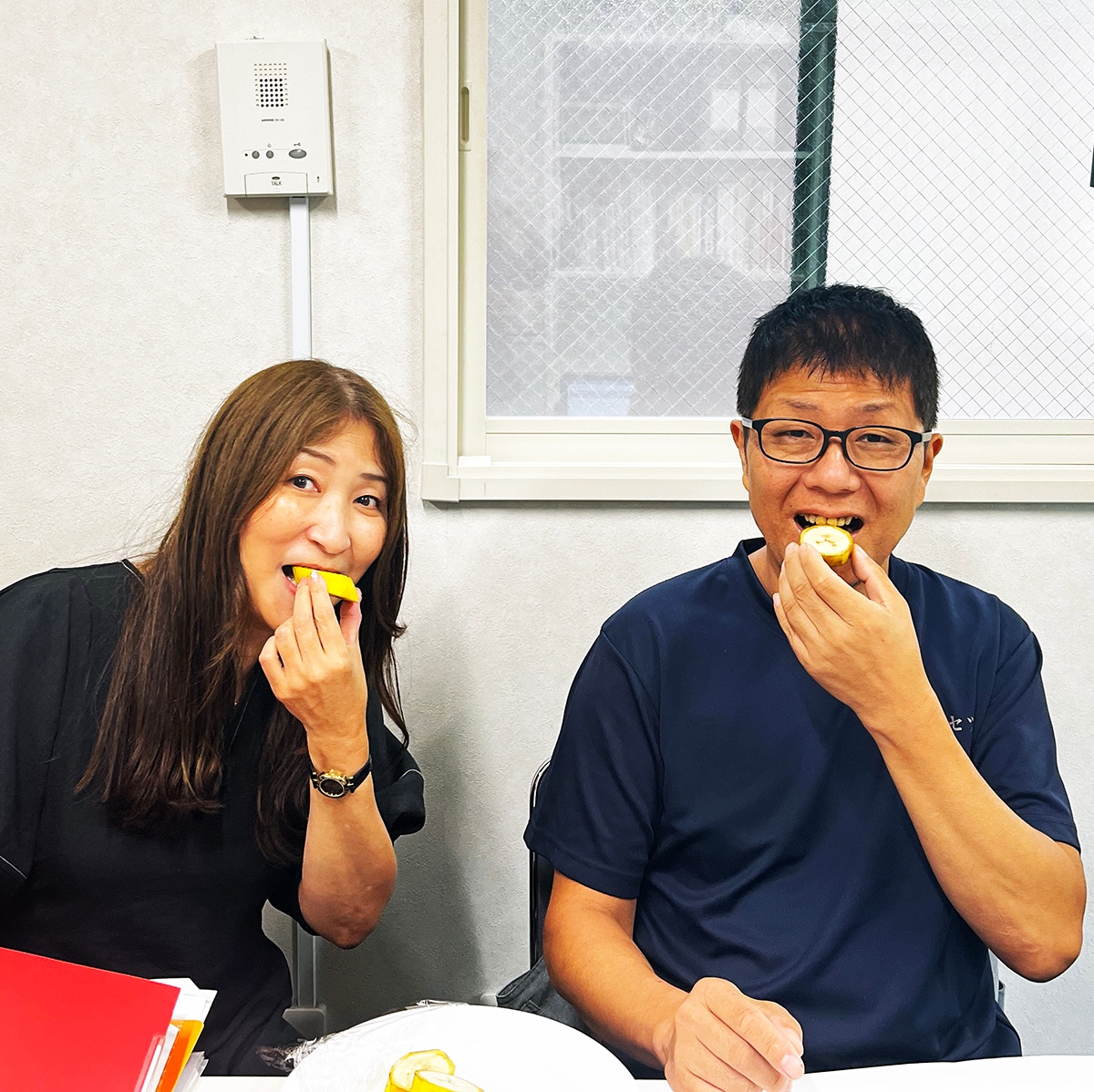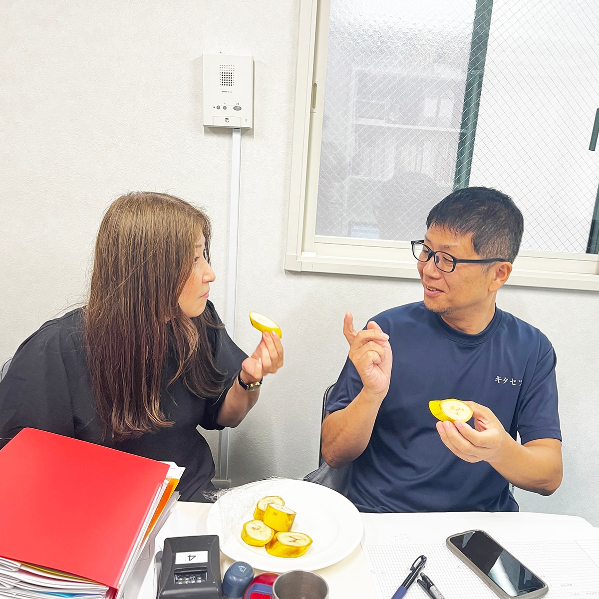 ▲バナナが大好きな先輩&後輩。午後の仕事の活力に!