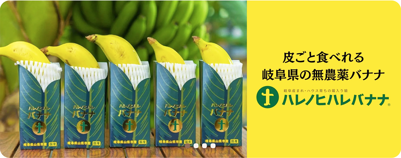さて、こちらの奇跡のバナナは岐阜県山県市の自社農園「ハレノヒハレファーム」さんで