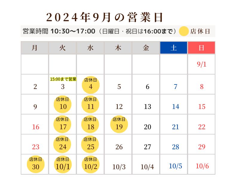 ※尚、来週9/3(火)は15時まで営業いたします。
