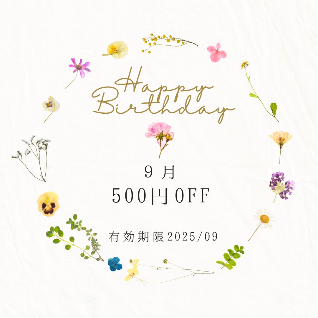 お誕生月より1年間有効です。(ツクツクとの併用はできません)