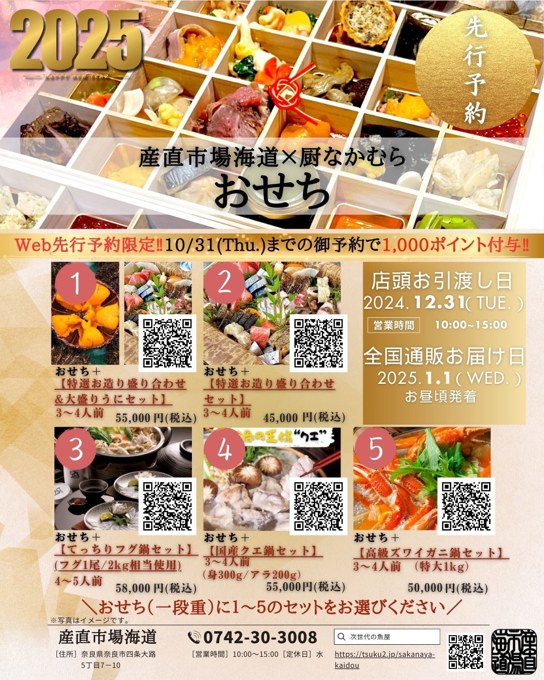 おせちセットの先行予約特典といたしまして、10/31(木)までの御予約で1,000ポイントを付与させていただきます♪