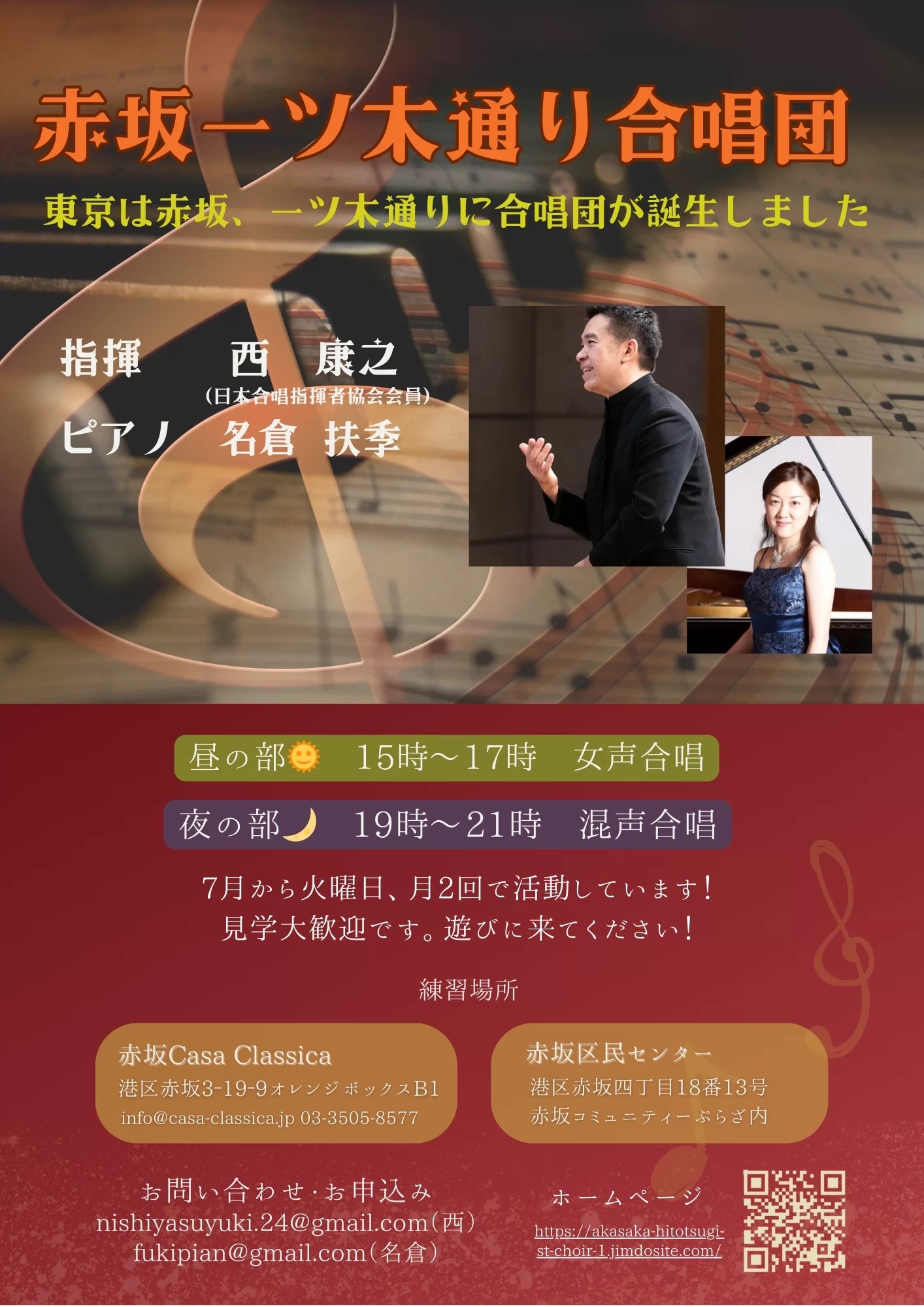 赤坂一ツ木通り合唱団は新しく立ち上がった合唱団です。ただいま新規団員を募集中!