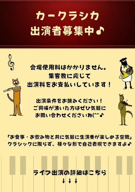 演奏の対価として出演料をお支払いいたします。随時募集中です♪