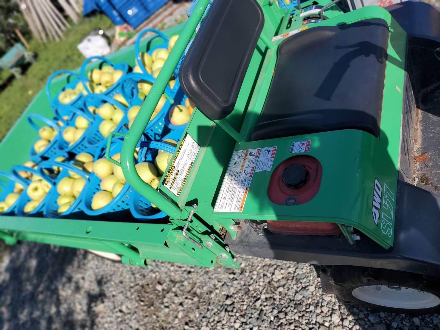 そして手籠いっぱいになったりんご達を集めて収穫とは別で選果(良品・キズがあるもの等の仕分けしている現場)している場所へ。