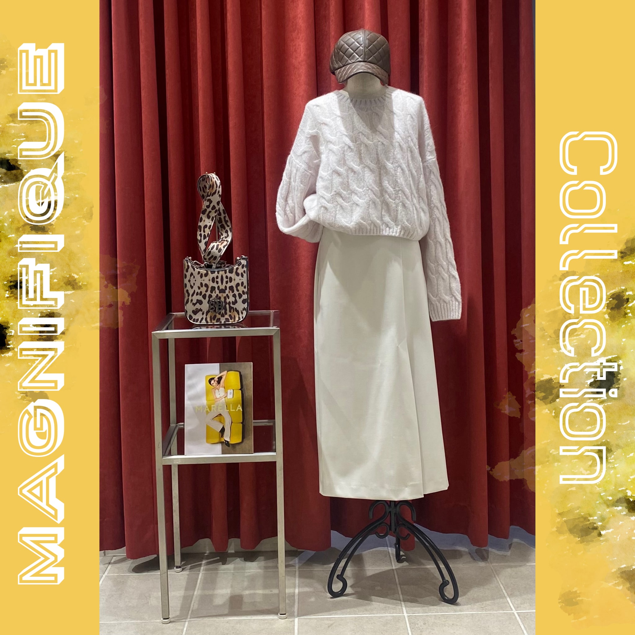 ♡「一色を選ぶだけで簡単に完成するルック」 マレーラモノクロームより新作の到着です😊今週はこの秋もトレンド継続中のショート丈ニットにタイトスカートを合わせ『Iライン』でスッキリとした着こなしを✴️