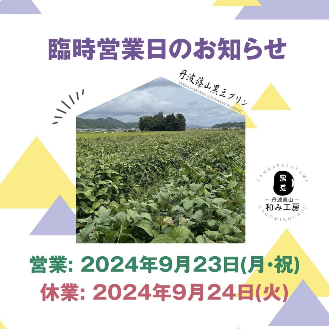 和み工房は、飲食ブースにて丹波篠山黒豆プリンや黒豆煮などをお持ちして、皆様のご来場をお待ちしております🍮🥄