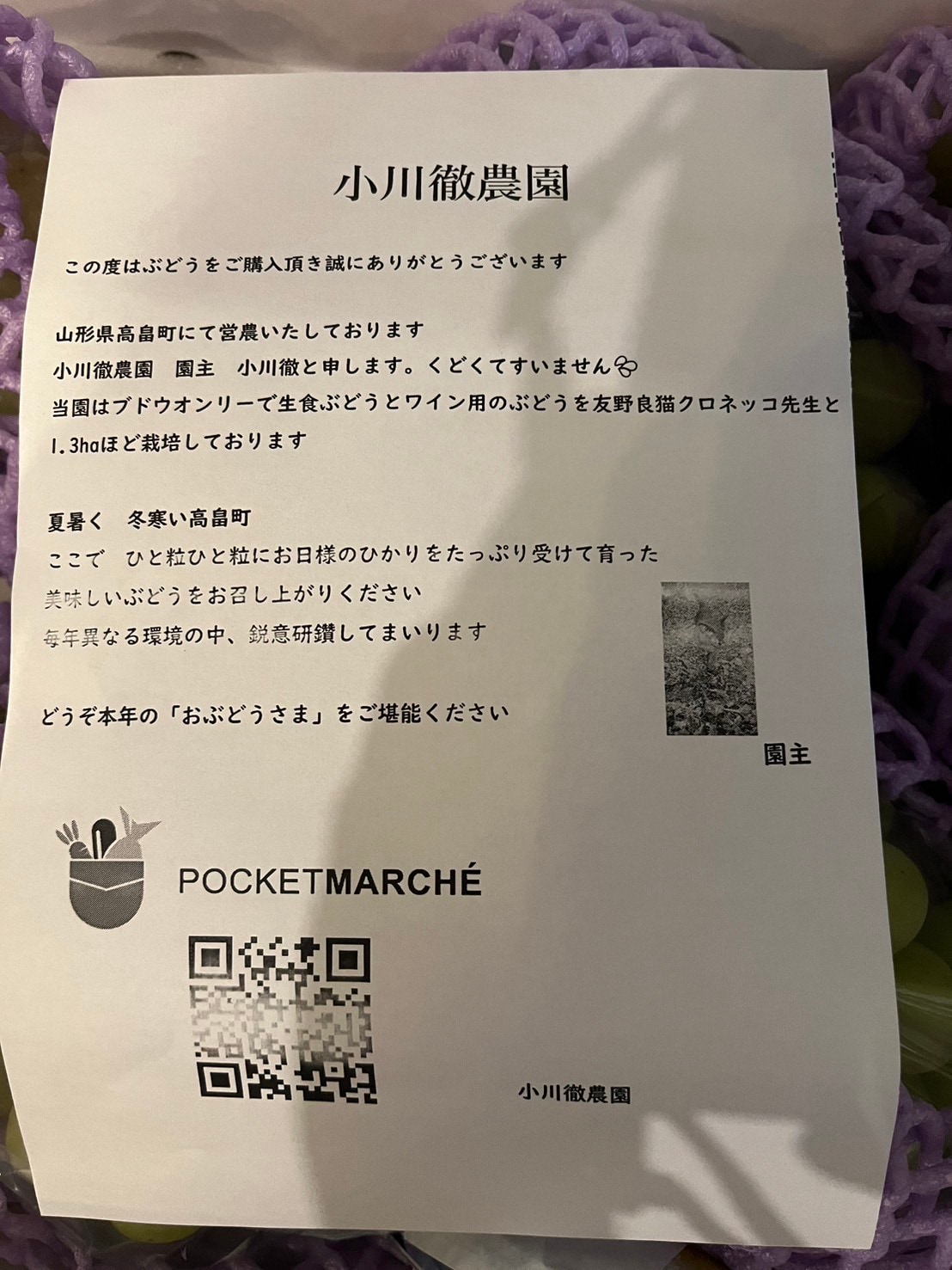 ぶどう農家さんから直接送ってもらうように手配したい、と。