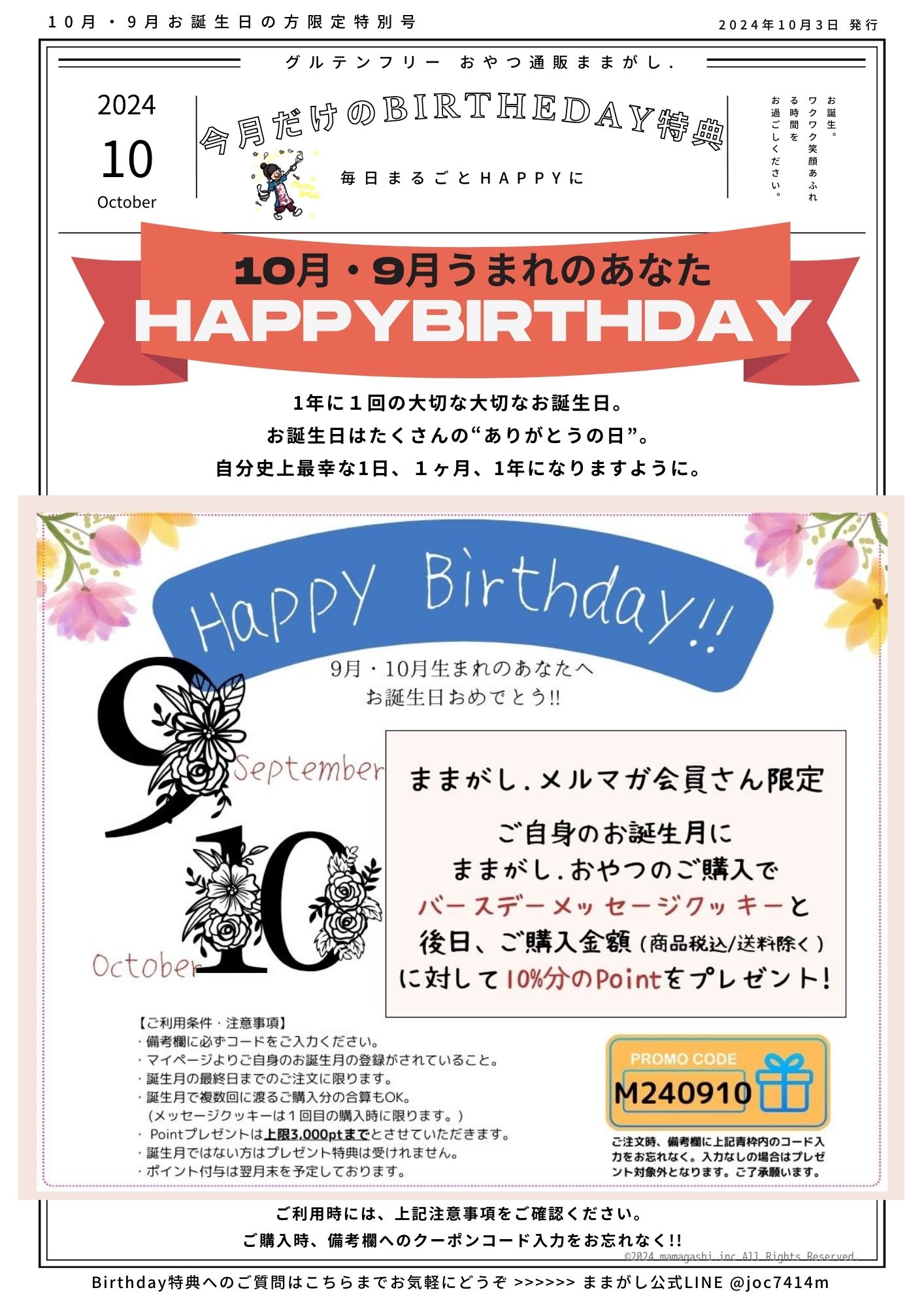 ままがし通信 10月・9月お誕生日の方限定特別号