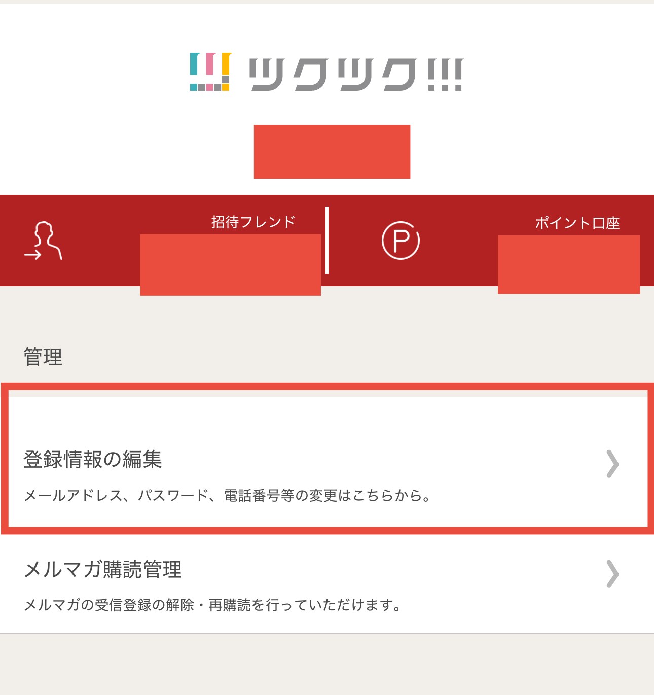 アプリ会員様→ツクツク!!!アプリの登録情報の編集で