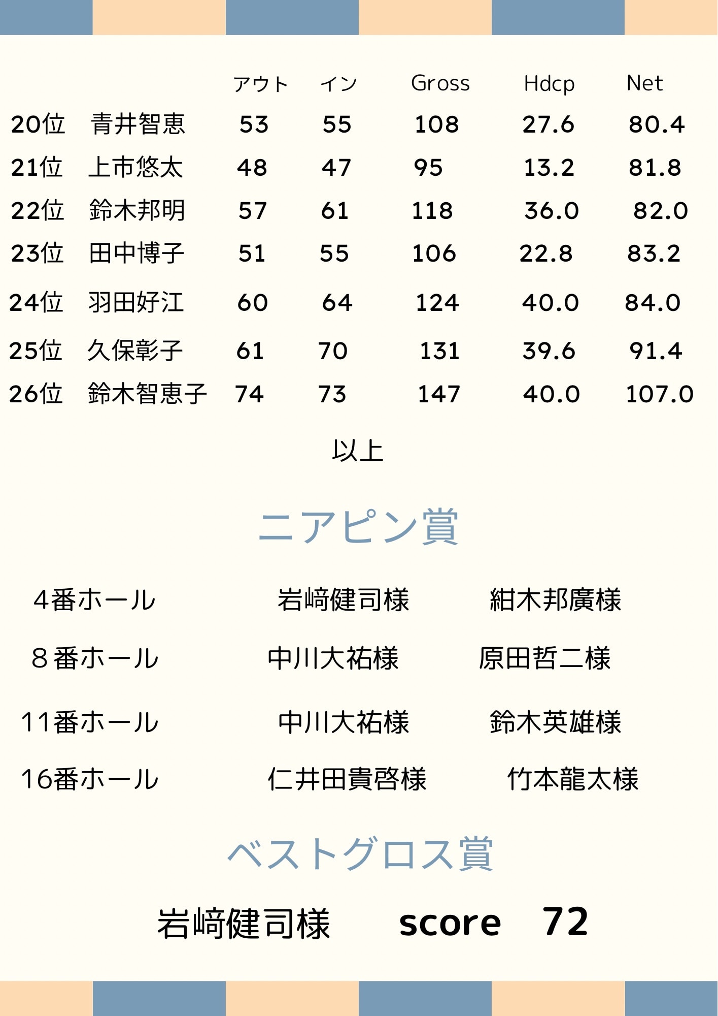 結果発表に参りたいと思います👏