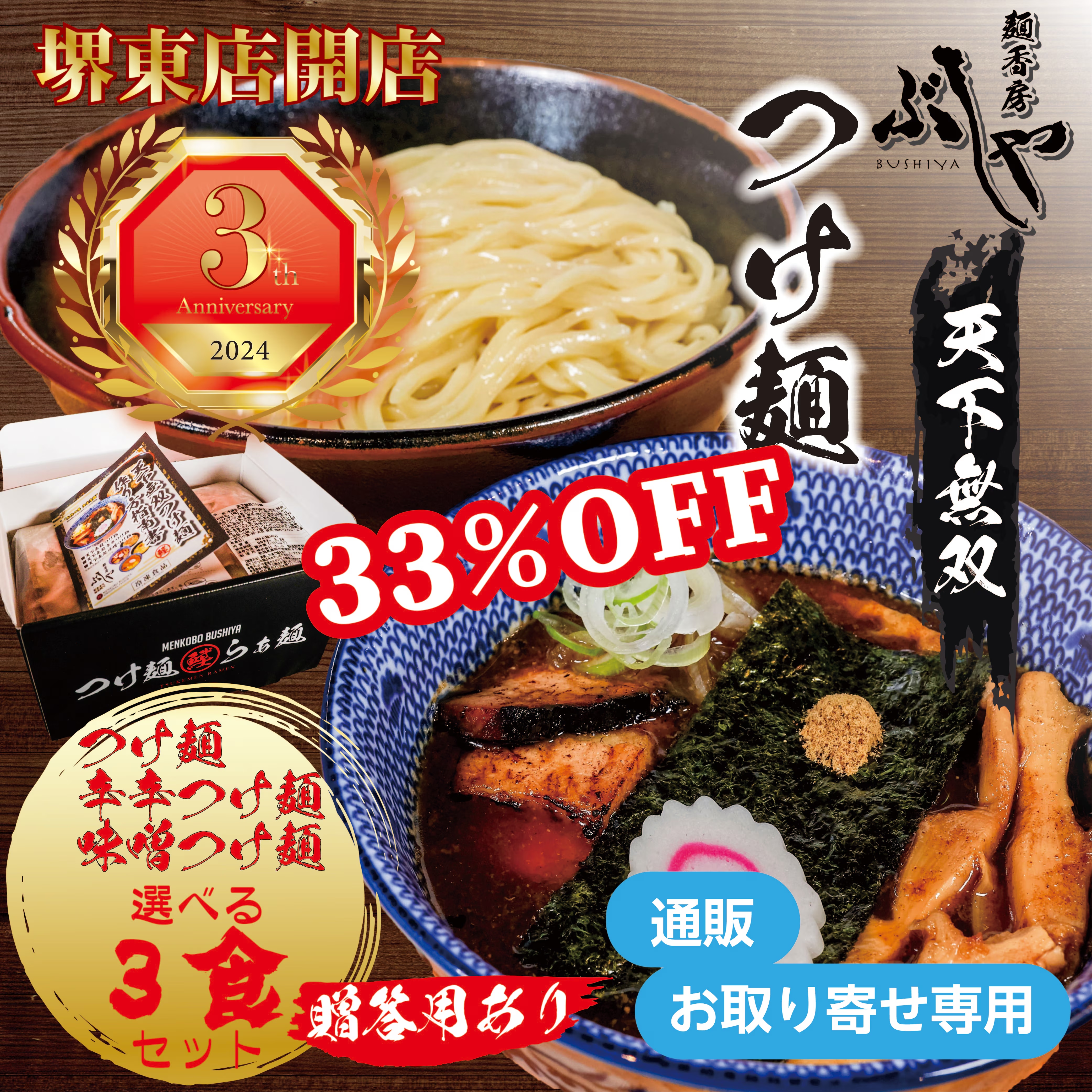麺香房ぶしやでは冷凍つけ麺33%OFFを実施中🎉5,000円以上お買い上げになると、なんと送料無料となります‼️