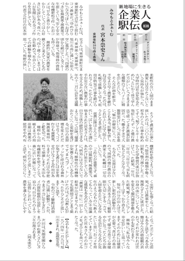 先日、地元の『あさひかわ新聞』さんに記事を掲載して頂きました。